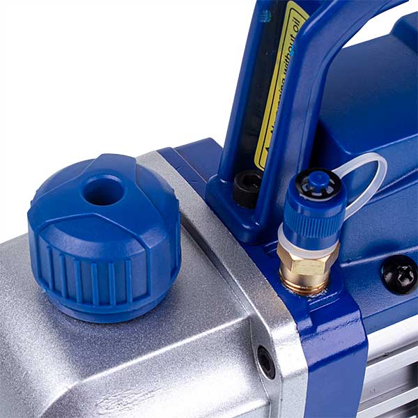 The single-stage vacuum pump is designed for vacuuming refrigerant lines in cooling and air conditioning systems. It is made of an aluminum housing (which dissipates heat well) as a single unit without a reducer (for greater compactness and reduced weight), with an elastic coupling between moving parts (for low noise and vibration).