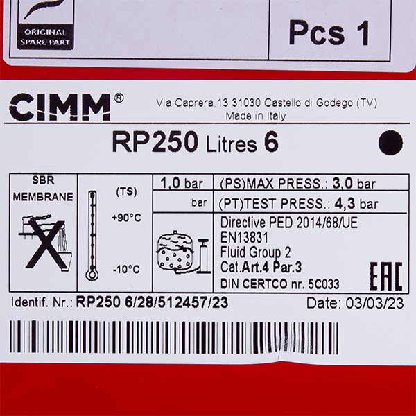 Expansion tank 5693900 with a capacity of 6 liters for Baxi/Westen gas boiler is designed for use in closed heating and hot water systems.