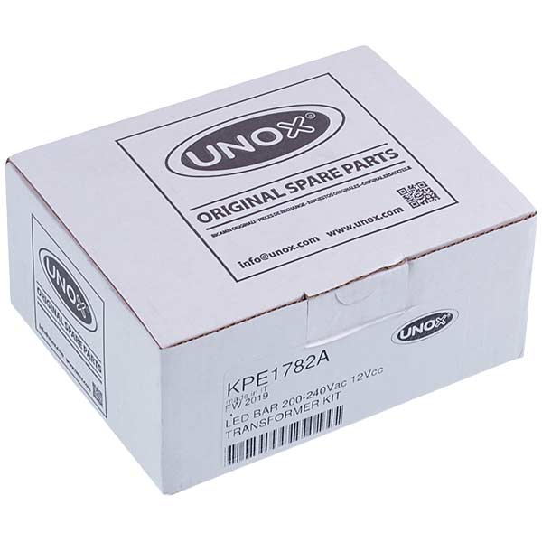 A transformer board designed for use in Unox XEVC/XEBC convection ovens. This component ensures efficient and reliable electrical supply to the internal lighting system of the ovens. The board converts the standard 230-volt mains voltage to a low 12-volt voltage required for the operation of the internal lighting components within the ovens.