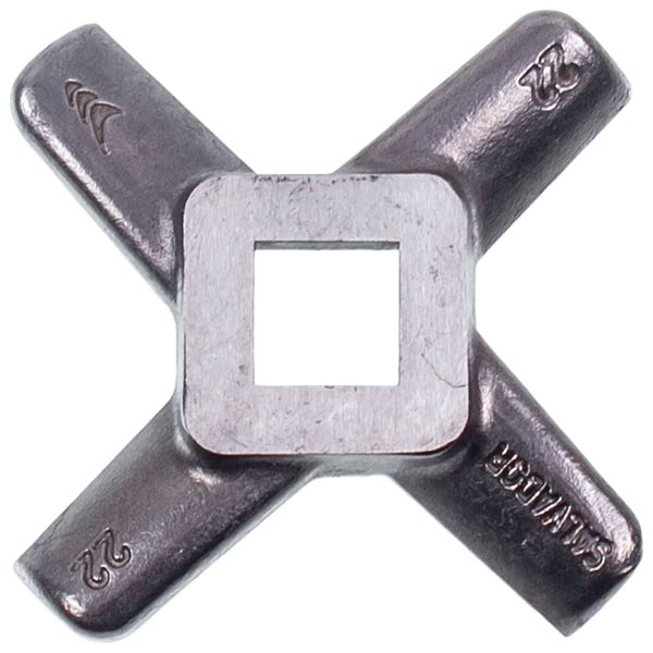 The CF22CARBO knife is designed for professional meat grinders with the Enterprise system (cutting tool - 1 knife + 1 plate). It is compatible with No. 22 models with an internal throat diameter of 82 mm. This universal knife features 4 blades (fingers) and is suitable for use in professional meat grinders from manufacturers such as SIRMAN - TC 22E, TCG 22E, FAMA, FIMAR, APACH, EVEREST, and many others.